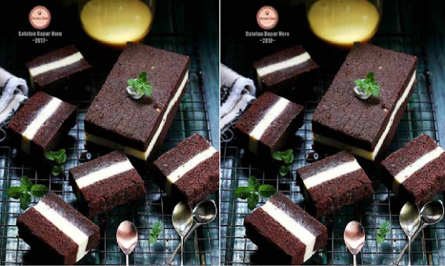 - Penyelesaian : tuangkan satu bahagian cake coklat, ratakan dan tutup permukaan loyang dengan aluminium foil. lalu kukus selama 20 menit dengan api panas sedang.